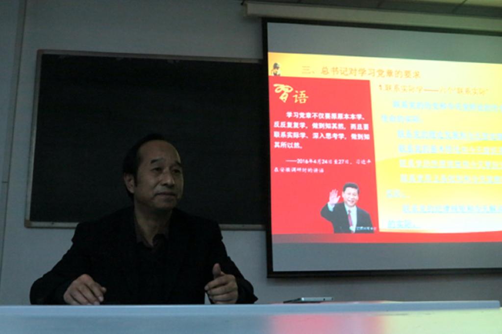 本次讲座主要围绕学习党章的重要性、党章新内容和如何学好党章三方面展开。首先陈太政老师带领支部党员回顾了中国共产党建设发展的历程。随后,陈老师分别从历史角度、理论角度和当前面临的新形势向大家阐述了新党章修改的内容及意义,对党章修改做了深入解读,要求每一位党员同志要认真学习党章,以党章党规为标尺规范自身行为,真正做到与时俱进、开拓创新。