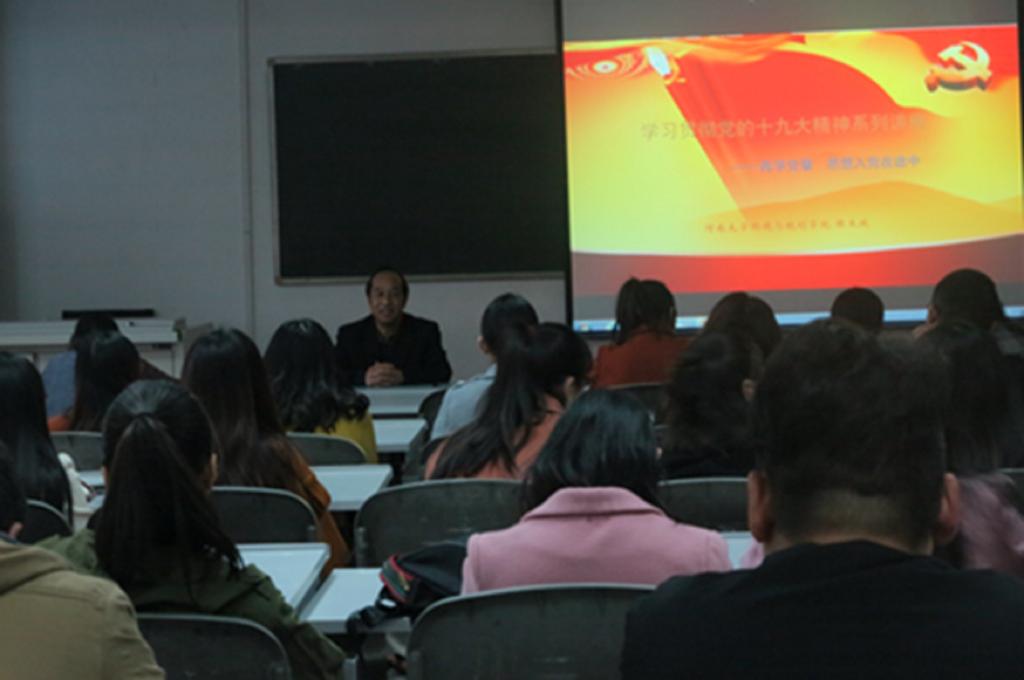为深入学习贯彻落实党的十九大精神,11月16日下午,学院研究生党支部在520教室举办了学习十九大精神的讲座。讲座由研究生第一党支部书记陈太政主持。