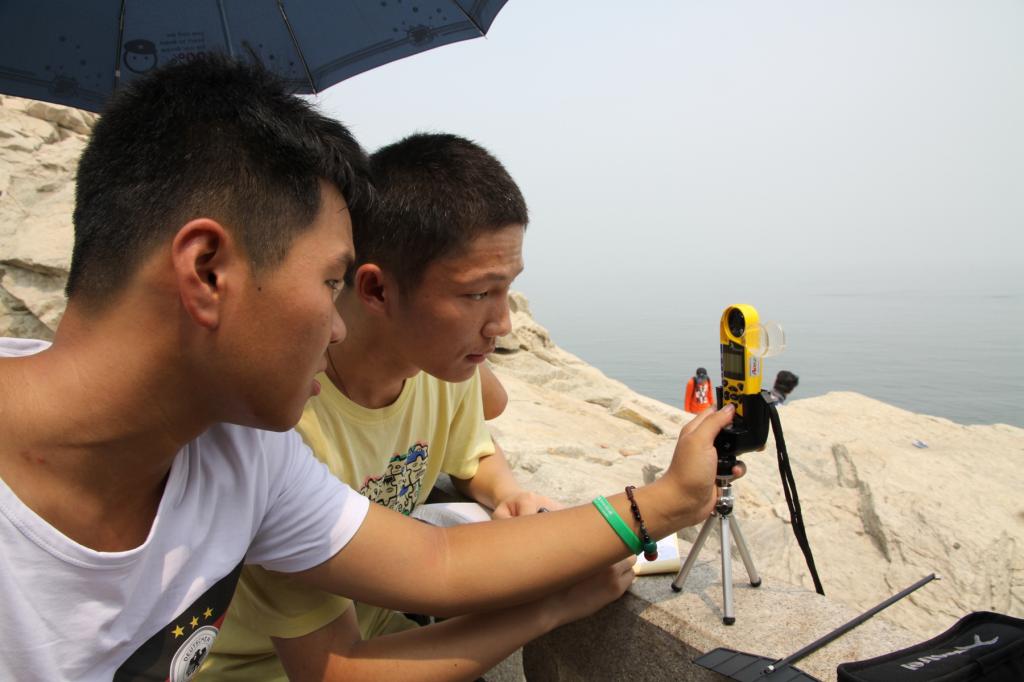 在连云港海岸实习进行气象要素测量